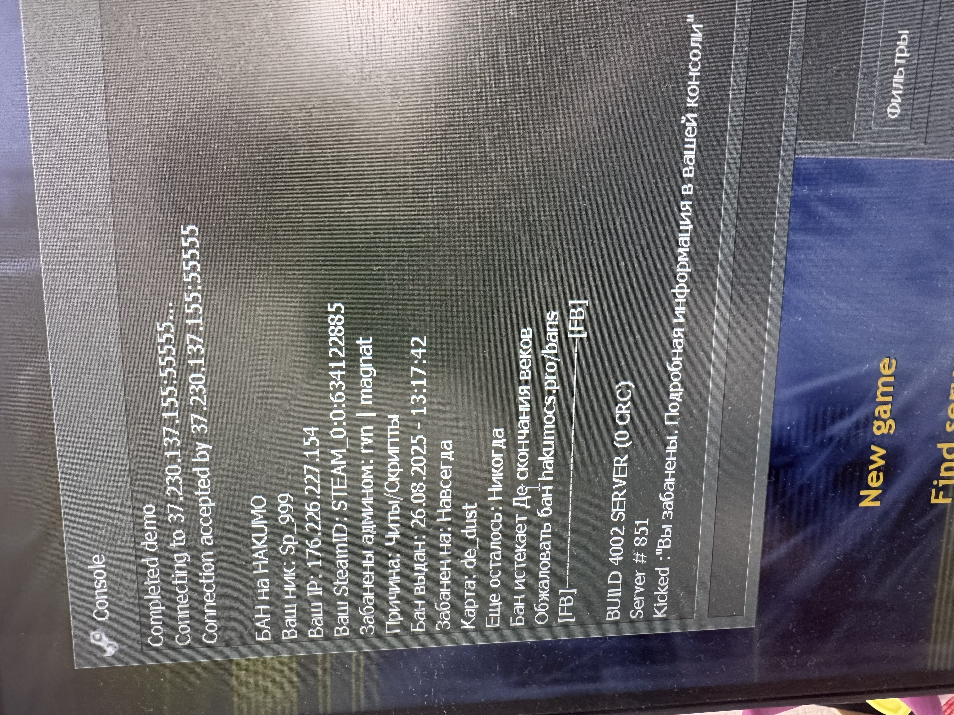 Приветствую, забанили ни за что... даже не понял за что, в описании написано читы\скрипты, забанил админ rvn | magnat.